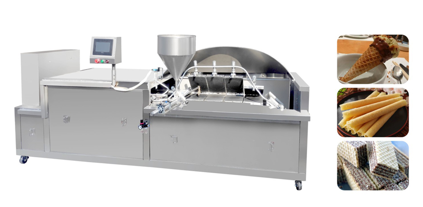 本機(jī)為我公司最新研發(fā)的蛋卷威化一體機(jī),主體為隧道式烘烤結(jié)構(gòu),生產(chǎn)速度快,性能穩(wěn)定,操作簡(jiǎn)單安全。自動(dòng)卷成型機(jī)可將蛋皮自動(dòng)加工成蛋卷,所加工蛋卷產(chǎn)品外形美觀整齊,成型速度快,解決了人工卷成型的所有問(wèn)題,大大提高了生產(chǎn)效率。加熱方式有電加熱和燃?xì)饧訜?種規(guī)格可供客戶選擇。