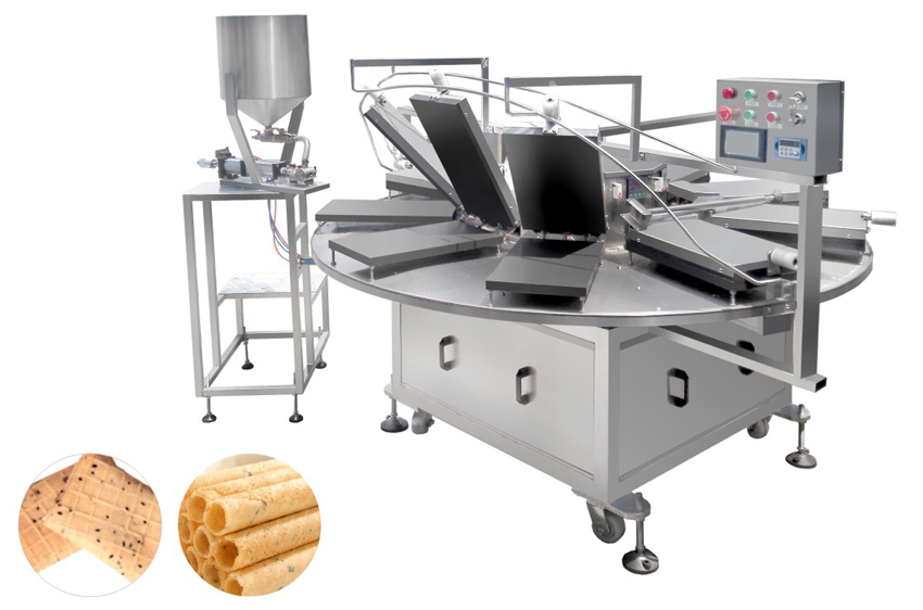 主要功能及用途 本機是目前市場上新式的手工蛋酥卷機。其主要功能為定量自動下料,生產速度快,體積小,操作使用極為簡單。本機生產使用時無噪音,一機有9-15塊煎板,可一人同時操作。具有清理方便、外型美觀、實用和衛生的特點,是目前市場上投資的理想機型。有電加熱和燃氣加熱2種規格可供用戶選擇。